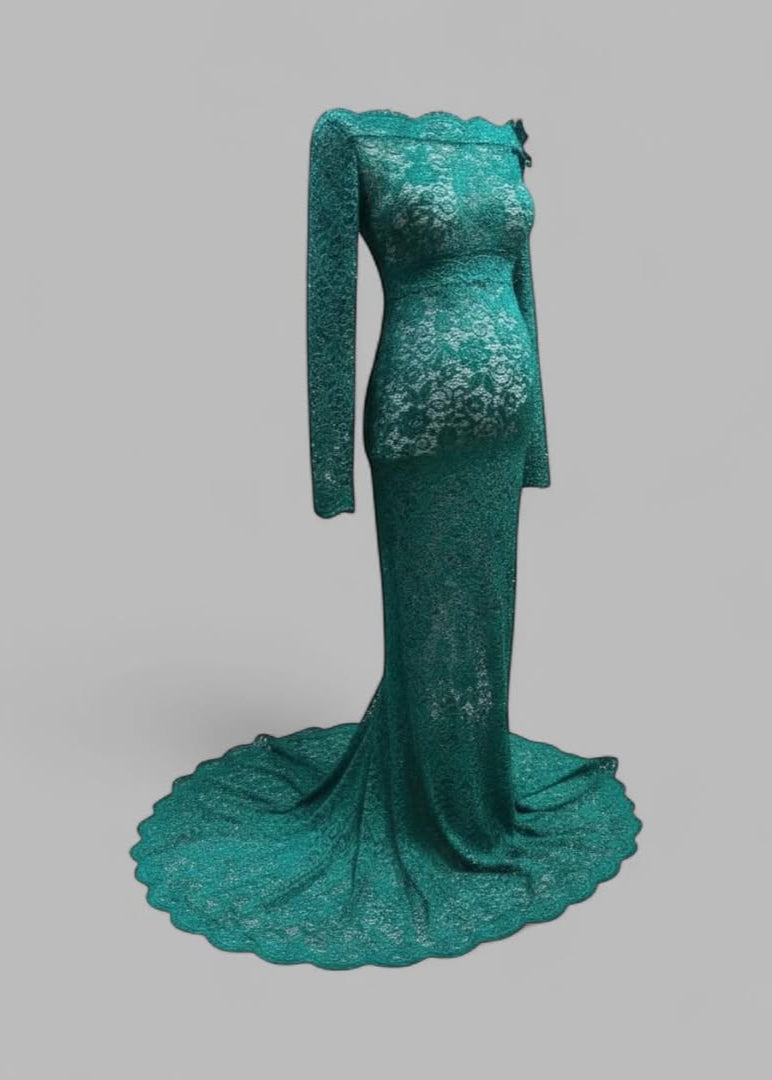 The Liora Set includes an off the shoulders lace top with scalloped lace trim and a fitted skirt.
