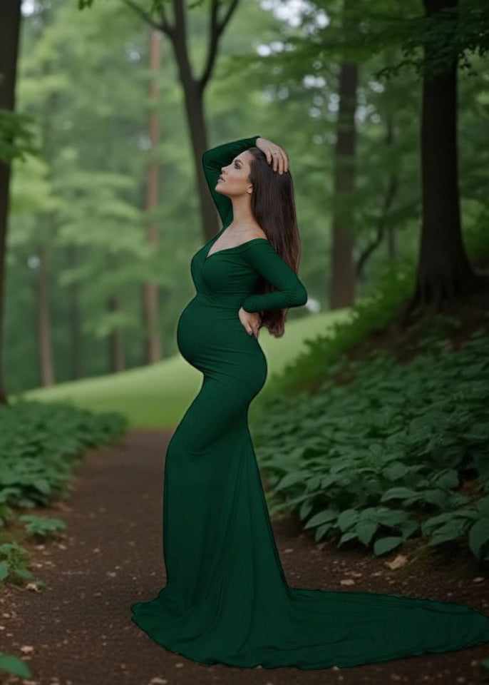 The Scarlet Gown features a fitted cut with an off the shoulders, long sleeves top.