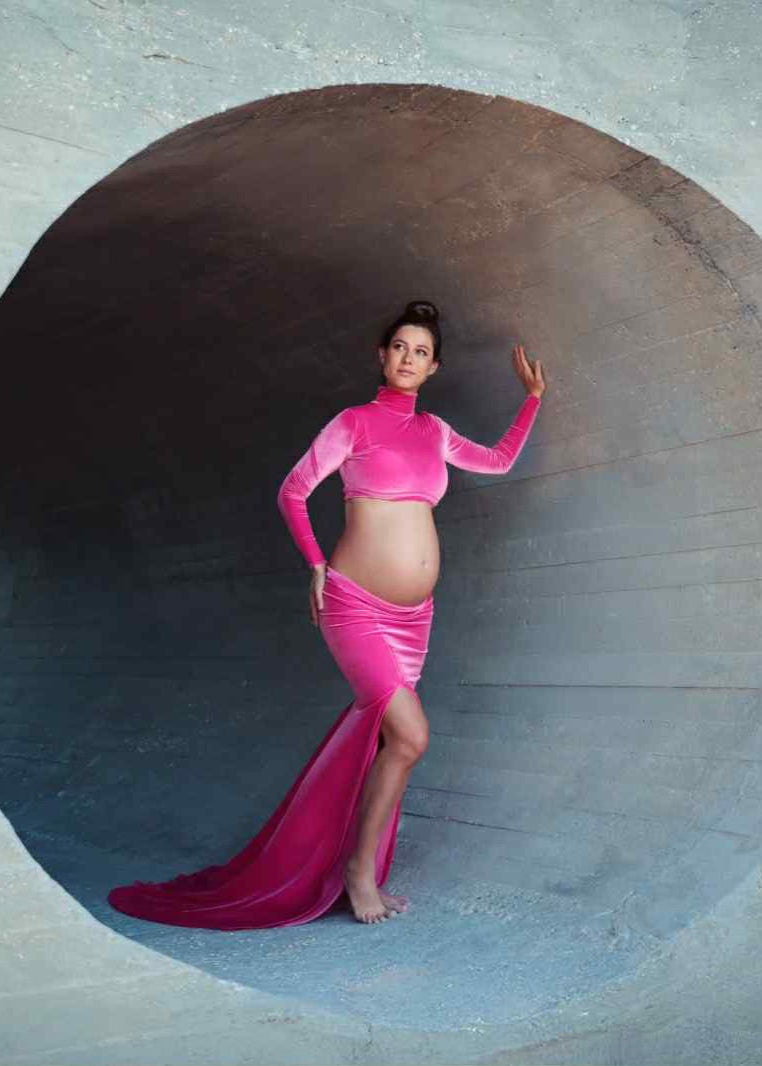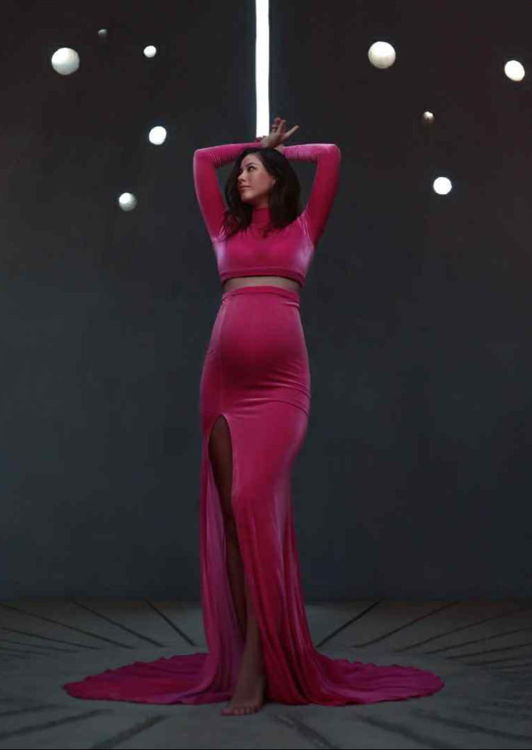 Sophia Velvet Set includes a Turtleneck Crop Top and a fitted style skirt with a leg slit. This will work great for maternity and engagement sessions!